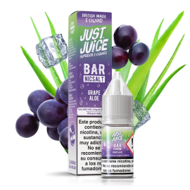 JUST JUICE GRAPE ALOE NIC SALT 10ML es una mezcla de rica fragancia de uva con las notas calmantes del aloe vera ofrece un equilibrio perfecto entre dulzor y frescura, une la dulzura jugosa de las uvas maduras con el toque fresco y ligeramente herbal del aloe vera, creando una experiencia de vapeo suave y revitalizante.
