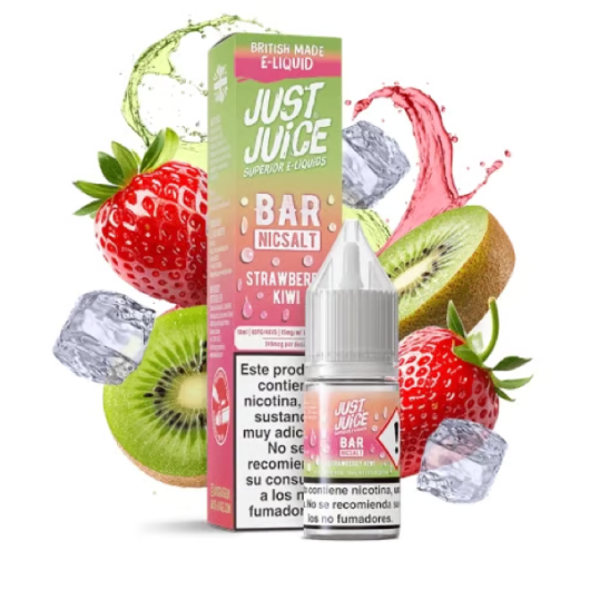 JUST JUICE STRAWBERRY KIWI NIC SALT 10ML En primer plano aparece la fresa madura, con su dulzura natural y ese perfil ligeramente cremoso que acaricia el paladar. El resultado es una experiencia de vapeo fresca, equilibrada y muy adictiva, que combina dulzor y acidez de forma magistral. Ideal para quienes buscan un sabor frutal con chispa, que no empalaga y que se puede disfrutar durante todo el día. Esta pareja de frutas no decepciona nunca.
