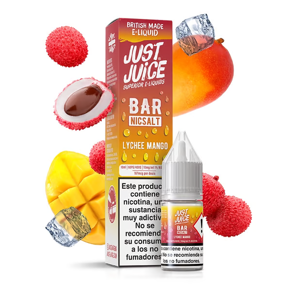 JUST JUICE NIC SALT LICHI MANGO 10ML Si buscas un sabor afrutado, jugoso y con un toque exótico, este líquido es la elección ideal. Dulzura tropical y frescura en cada vaporada. un líquido que combina a la perfección la dulzura exótica del lichi con la jugosidad intensa del mango, creando una fusión de sabores vibrante y envolvente.